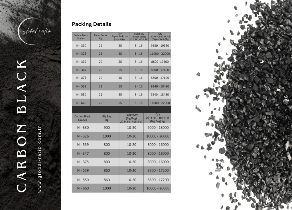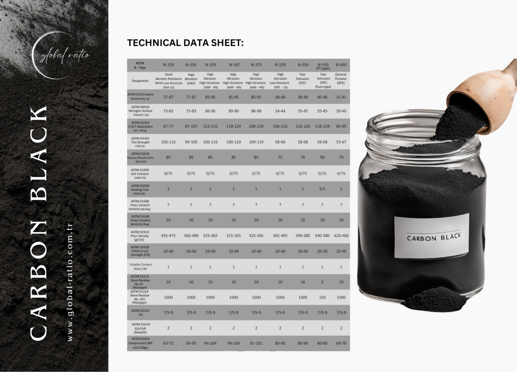 Carbon black in plastics and related products is mainly used for coloring, heat protection, shielding against ultraviolet radiation, and increasing the strength of certain materials. Currently, Global Ratio Company Supplies produces over 200 types of carbon black used in various industries, including automotive tires, shoes, batteries, paint, coating, conveyor belts, and more.